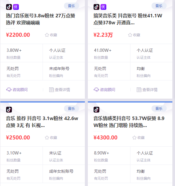 可以去賬號(hào)交易平臺(tái)看看,現(xiàn)在的粉絲價(jià)格在4分錢(qián)左右,如果賬號(hào)未實(shí)名,價(jià)格更高。
